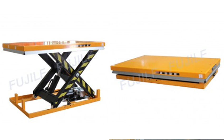 Plataforma de elevación hidráulica de riel guía FUJILF que solía transferir carga entre capas en el taller, restaurante y hotel. Debido a que la altura reducida de la mesa es de solo 150-200 mm, se usa en el sitio